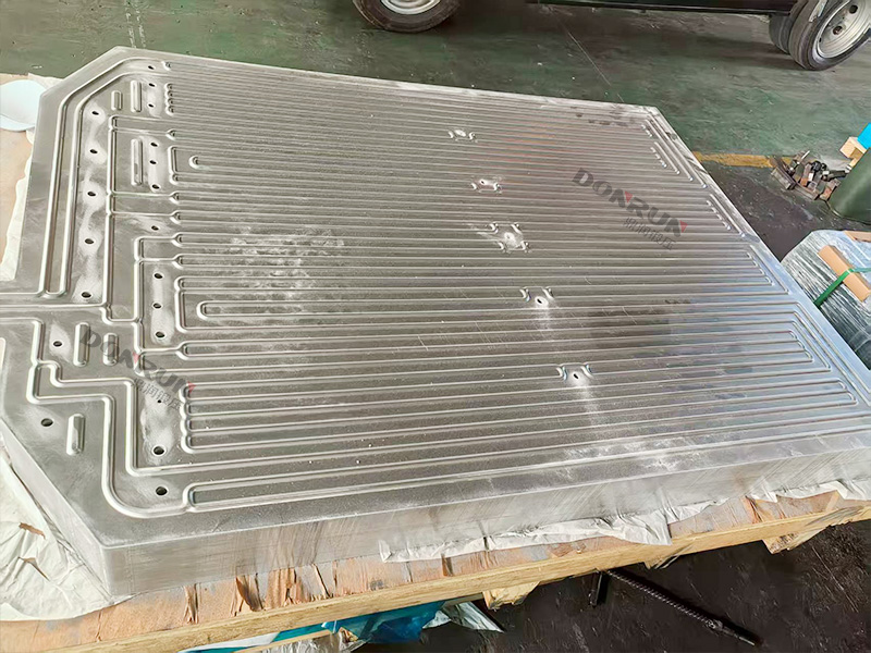 那液冷板是如何生产的呢?目前使用较多的工艺是:冲压成型和搅拌摩擦成型。本文着重介绍冲压成型,也是最经典、最广泛的成型方式,是鼎润锻压的一台2500吨框架液压机负责一次冲压成型、经过清洗、涂钎料、钎焊、后处理机加工艺,完成液冷板的生产,再经过检测、测试等工作就可以完成一块合格的液冷板成型了。